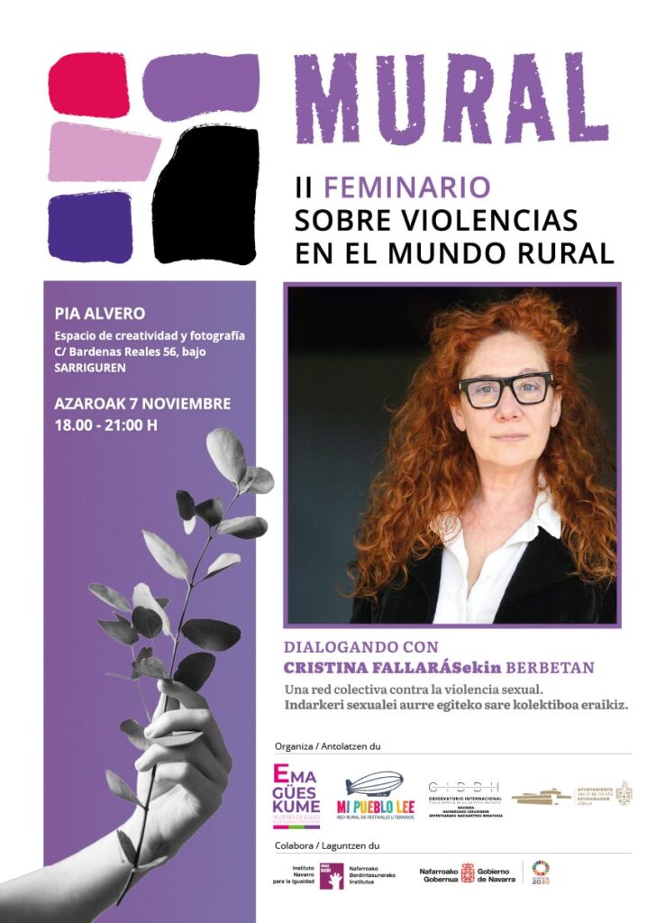 El feminario MURAL regresa con un encuentro abierto al público junto a Cristina Fallarás, dentro de un programa de trabajo y reflexión sobre las violencias machistas en el entorno rural entorno rural navarro.