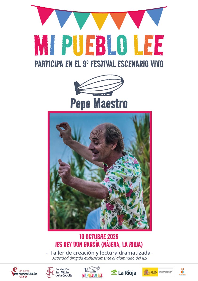 Pepe Maestro, escritor y narrador oral, impartirá un taller de creación literaria al alumnado del IES Rey Don García, en Nájera (La Rioja). Esta actividad se enmarca en el 9º Festival Escenario Vivo.